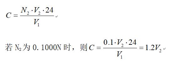 用0.1000N的Na2S2O3滴定,待溶液呈淡黃色時,加濃度為1%淀粉指示劑數(shù)滴使溶液呈蘭褐色,繼續(xù)使用0.1000N的Na2S2O3滴定至無色。記下Na2S2O3用量。