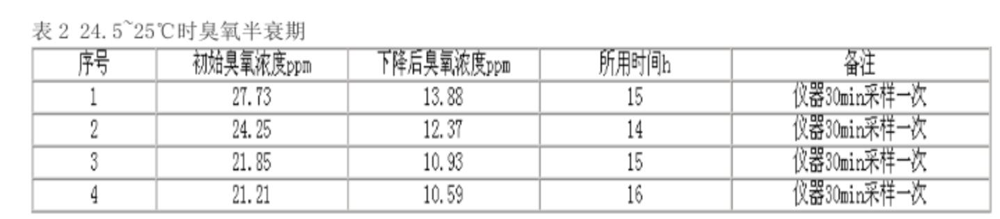 3.1臭氧在空氣中的半衰期與環(huán)境溫度有很大關(guān)系,溫度較高,臭氧分解快,半衰期短。W·J