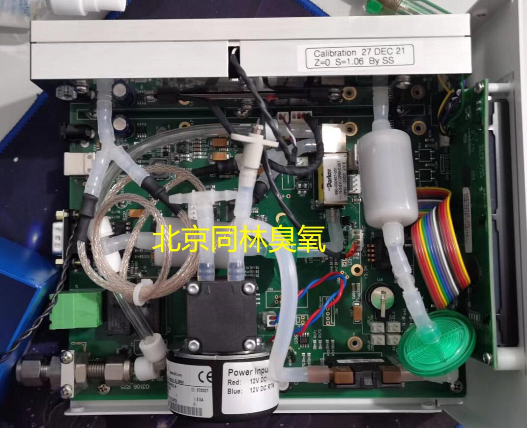 有兩個(gè)內(nèi)部臭氧洗滌器(如圖2)。一、臭氧尾氣洗滌器(照片中LCD顯示屏下方),用于在泵前洗滌臭氧,保護(hù)泵免受高臭氧損壞;另一個(gè)用于臭氧測量。不需要更換臭氧廢氣洗滌器,除非它明顯地將材料泄漏到泵中。臭氧測量洗滌器連接到電磁閥的入口和“長端”。該臭氧測量洗滌器應(yīng)每連續(xù)運(yùn)行六個(gè)月(約 4,000 小時(shí))更換一次;否則,建議每年更換。要更換內(nèi)部臭氧洗滌器/過濾器,請卸下將頂蓋固定到位的六個(gè)螺釘,從而卸下頂蓋。通過斷開連接到每一端的管道并在其位置連接一個(gè)新的管道,可以輕松更換洗滌器。