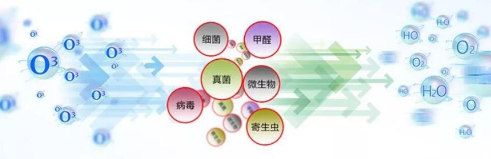 臭氧(O3)的消毒原理是:臭氧在常溫、常壓下分子結(jié)構(gòu)不穩(wěn)定,很快自行分解成氧氣(O2)和單個氧原子(O)。后者具有很強的活性,對細菌有極強的氧化作用,將其殺死,多余的氧原子則會自行重新結(jié)合成為普通氧原子(O2),不存在任何有毒殘留物,故稱“綠色”消毒劑。它不但對各種細菌(包括肝炎病毒,大腸桿菌,綠濃桿菌及雜菌等)有極強的殺滅能力,而且對殺滅霉菌也很有效。