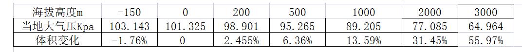 表 C.3 氣體體積與海拔的關系