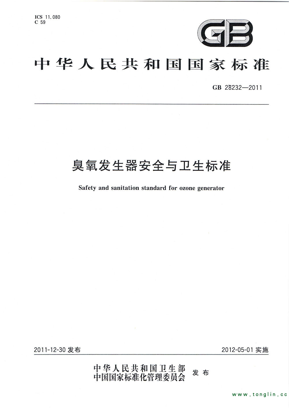 英文標準名稱 Standard Title in English Safety and sanitation standard for ozone generator